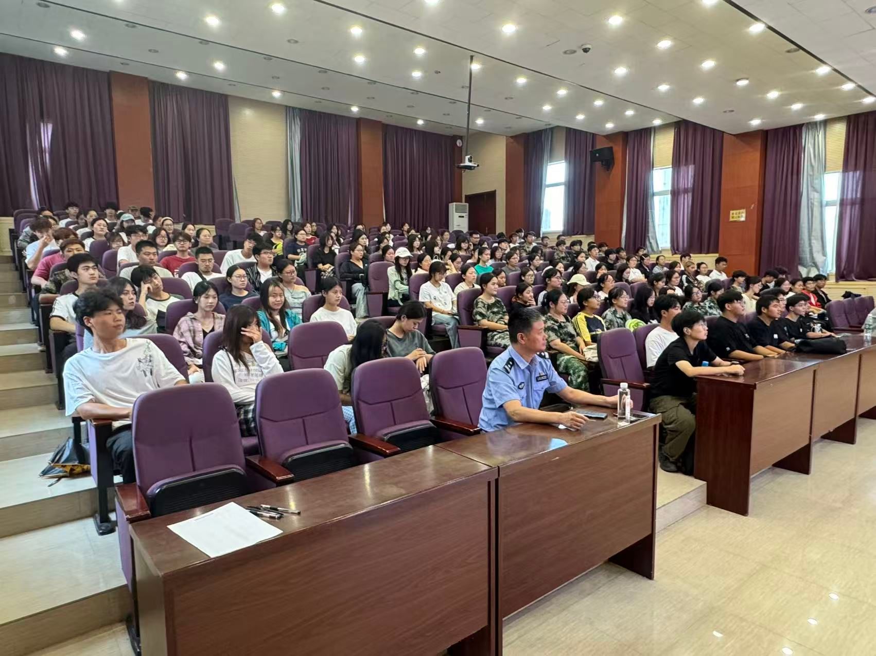为切实提升2025级新生的防范电信网络诈骗意识和能力,保障新学期校园安全工作的平稳开展,保卫处于9月16日下午2点半,特邀我校辖区刘永立警官,在学术中心二楼报告厅举办了一场生动而深刻的反诈宣传专题讲座。本次讲座由学校保卫处牵头,保卫处何金标、雷霆、李龙、李文凯共同组织,200余名新生现场聆听。
