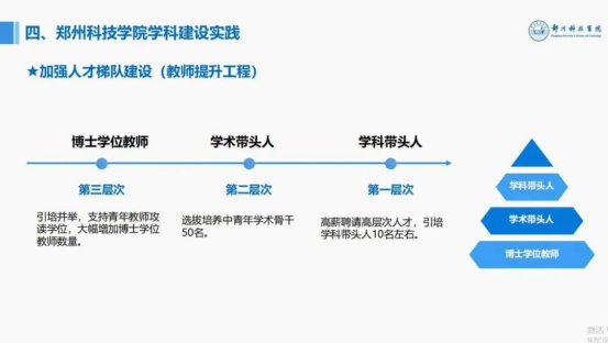 作为河南省“以工为主的高水平应用型民办大学”,郑州科技学院从专科升格为本科院校,紧密对接河南省装备制造、电子信息、食品等主导产业需求。面对教育强国战略及河南省“学科引领产业”政策要求,学校在民办高校普遍存在的学科基础薄弱、师资队伍不稳等挑战下,通过顶层设计、制度保障与资源整合,实施《学科建设与科技创新工程》,分两阶段推进学科建设。学校同步推进制度创新,出台学科管理、科研奖励等制度,优化职能部门大部制改革,并通过“引培并举”策略计划新增多名学术骨干、学科带头人,不断提升博士教师比例。学校强化学科集群优势,加大科技成果转化力度,不断为区域经济高质量发展提供人才与科技支撑。