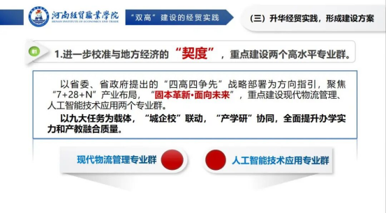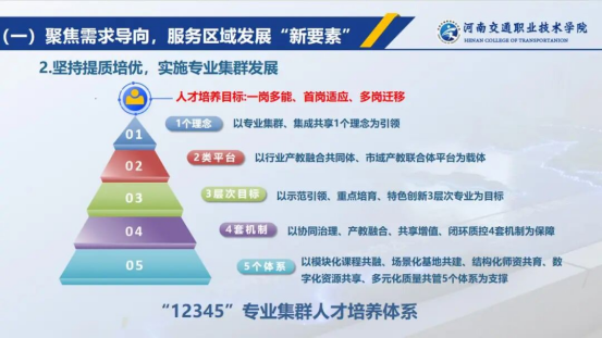 河南职业技术学院校长夏新颜以《优化结构 精准对接 以高水平专业群建设推动学校高质量发展》为题,从“优化专业结构,提升服务贡献,专业‘双融双提升’”3个方面系统呈现了学校深化职教改革的创新实践。