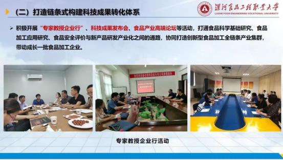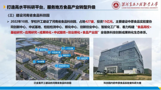 他表示,近年来,学校持续深化产教融合校企合作,建设了国家级食品应用技术协同创新中心、省政府首批命名的河南省食品加工中试基地和省政府重点打造的中原食品实验室,汇聚了一批国家级创新领军人才,逐步形成了“产学研转创”融合发展办学格局。并从“引入国家级创新团队打造国家级创新基地”“打造链条式构建科技成果转化体系”“完善创新体制机制”系统阐述了学校建设科技创新平台、攻克技术难题的做法。在支撑河南食品产业发展、助力食品企业发展方面取得了显著成效。他认为,作为职业院校一要建设科研平台,做好服务地方产业发展的大文章。二要积极开展科技成果转化工作,助力企业提质增效。三要优化科研机制,营造服务产业发展良好环境。