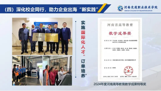 河南交通职业技术学院副校长李小强作了题为《扎根中原大地 铸就交通职教新高地——河南交通职业技术学院高质量发展创新实践》的报告,介绍了学校通过“聚焦需求导向、深化产教融合、深化科教融汇、深化校企同行、深化军民融合”,在服务区域发展、行业发展、产业转型、企业出海、人才强军等领域取得的显著成效,培养了近10万名高技能人才,为河南省交通事业和区域经济发展作出突出贡献。