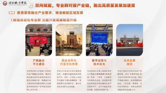 他表示,在人工智能时代背景下,河南机电职业学院紧跟产业发展需求,突破传统职业教育模式,推动学科与技能的深度融合,培养适应自动化、智能化、数字化产业升级的现场工程师。学校通过打造“场景真实、开放融合”的金基地、“对接岗位、数智融合”的金课程、“双元开发、形态多样”的金教材以及“技艺精湛、结构合理”的金教师,全面提升教育质量与人才培养水平。在新能源汽车、工业机器人等高端产业领域,学校与龙头企业深度合作,通过线上课堂、工程教育中心等平台,实现“吃、住、学、练、创”一体化的教学模式,培养了大量适应产业需求的高技能人才。