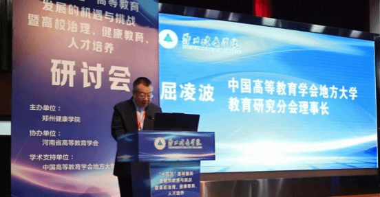中国高等教育学会地方大学教育研究分会理事长屈凌波致辞。他表示,作为高等教育体系的重要组成部分,地方高校如何找准定位,发挥优势,加强治理体系建设,提高人才培养质量,积极回应教育强国建设的时代召唤。郑州健康学院作为本次研讨会的主办单位,在健康教育、人才培养等方面进行了积极的探索和实践,取得了显著的的成效。通过本次研讨会的交流分享,广大的地方高校一定能够进一步相互学习,相互启发,找准办学定位,积极探索并践行特色化、差异化的发展路径,构建互补共生的教育生态,为加快建设教育强国贡献地方高校的智慧和力量。