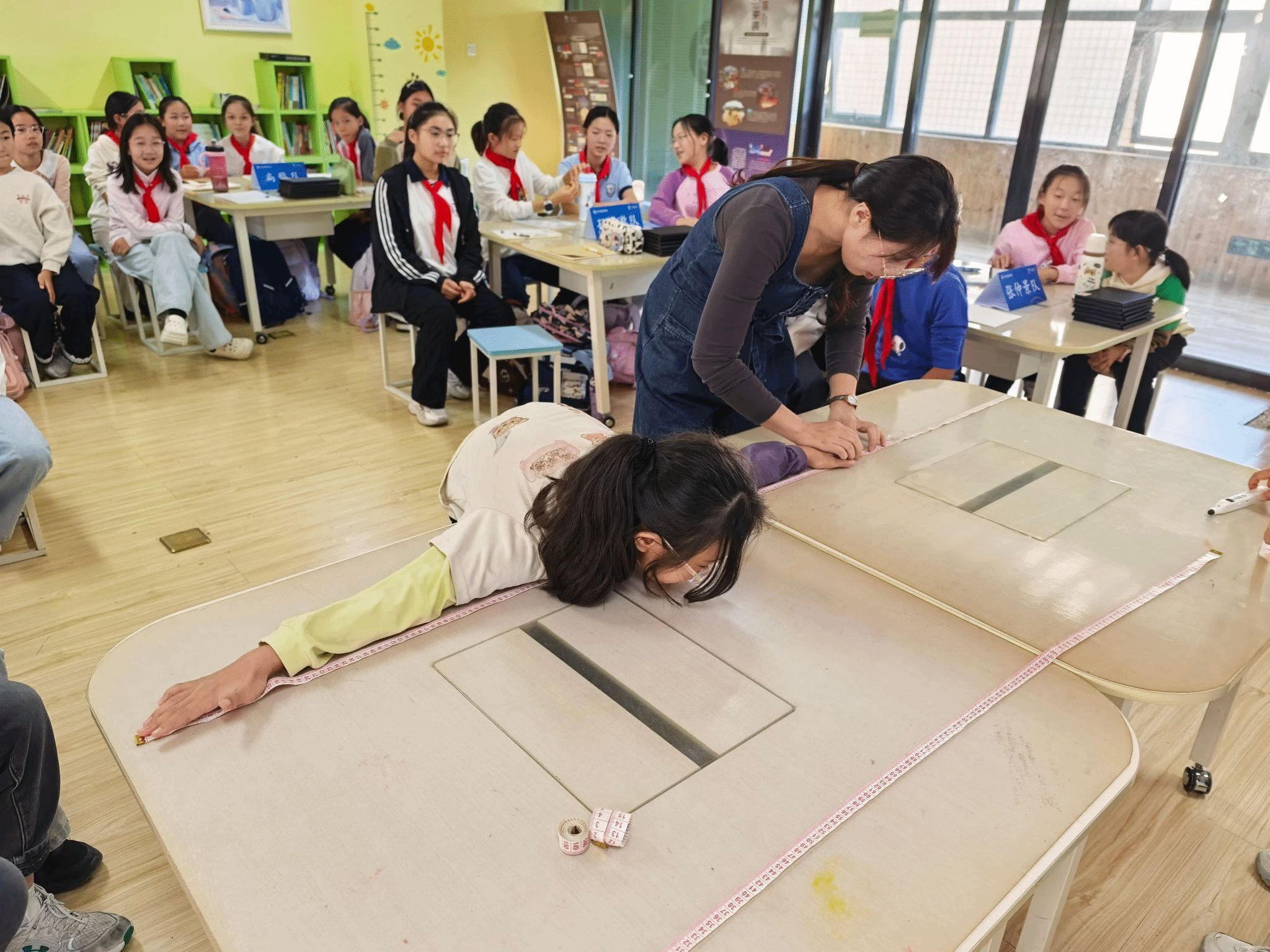 此外,课程特别设置了“臂展测量与实践”环节,详细讲解臂展的定义、测量方法及其在运动选材与健康评估中的意义。薛晓菲指出,臂展与身高的关系可作为个体运动潜能的重要参考,帮助学生理解身体结构与运动能力之间的科学联系。
