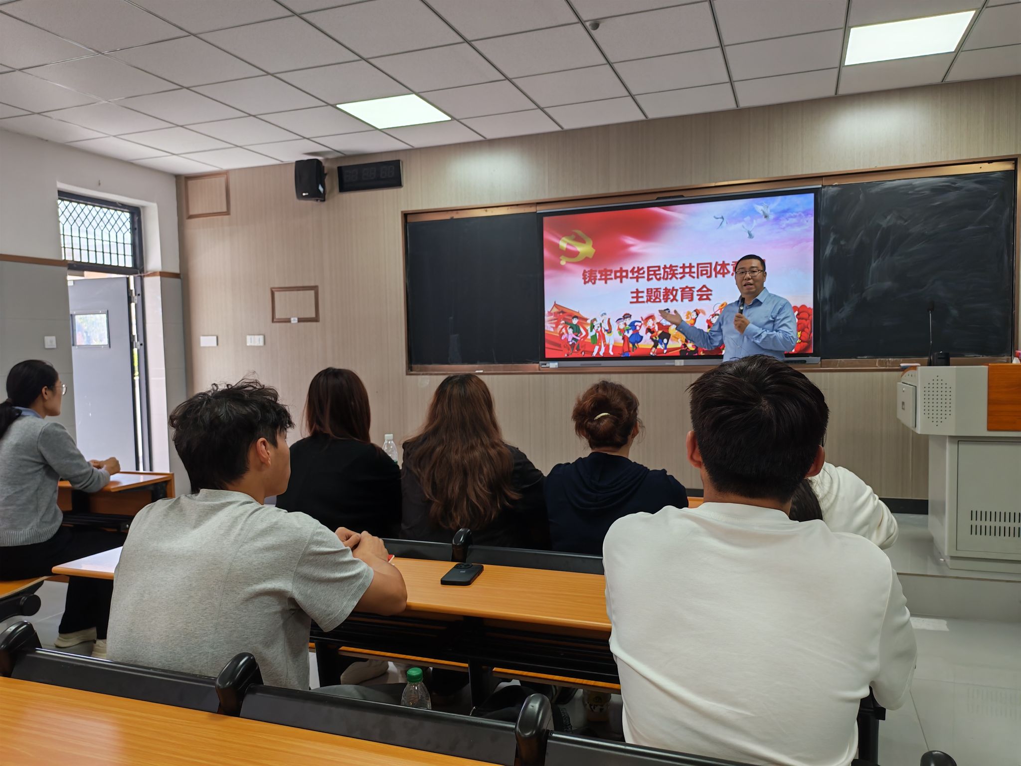 为深入学习贯彻习近平新时代中国特色社会主义思想,认真落实学校党委《关于在全校开展铸牢中华民族共同体意识暨民族宗教政策法规宣传月活动的通知》精神,9月25日,体育健康党总支卫生健康管理系党支部在四教楼二楼教室,组织开展了铸牢中华民族共同体意识主题教育活动。卫生健康管理系副主任、体育健康党总支副书记杨平,系办公室主任、党支部书记贾坯坯,辅导员杨婧如以及系内少数民族教师和学生代表共同参加了此次活动。