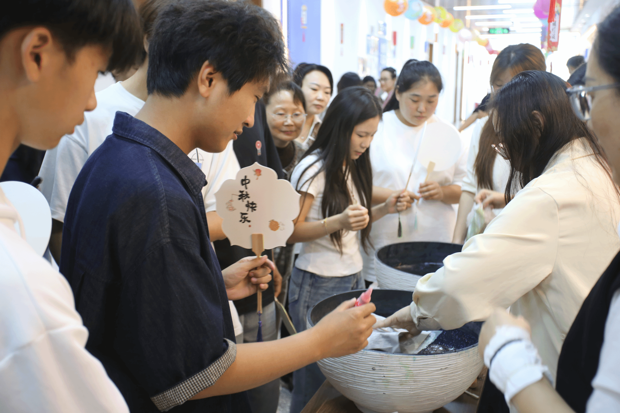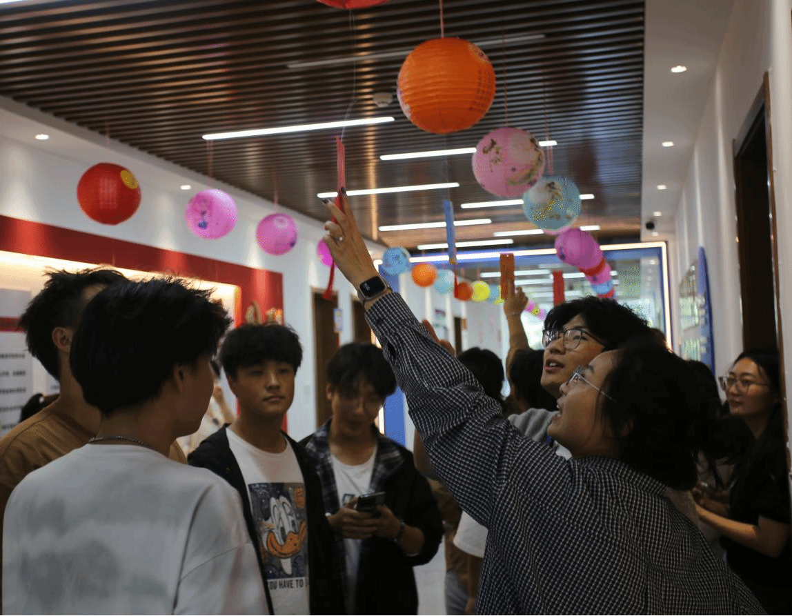 本次活动设置了富有传统韵味的猜灯谜和体验非遗技艺的漆扇制作两个主要环节二楼走廊被富有中秋韵味的红灯笼彩色灯谜条点缀得格外喜庆,瞬间将师生们带入浓厚的中秋文化氛围之中让大家切身体会到中华传统文化的独特魅力。