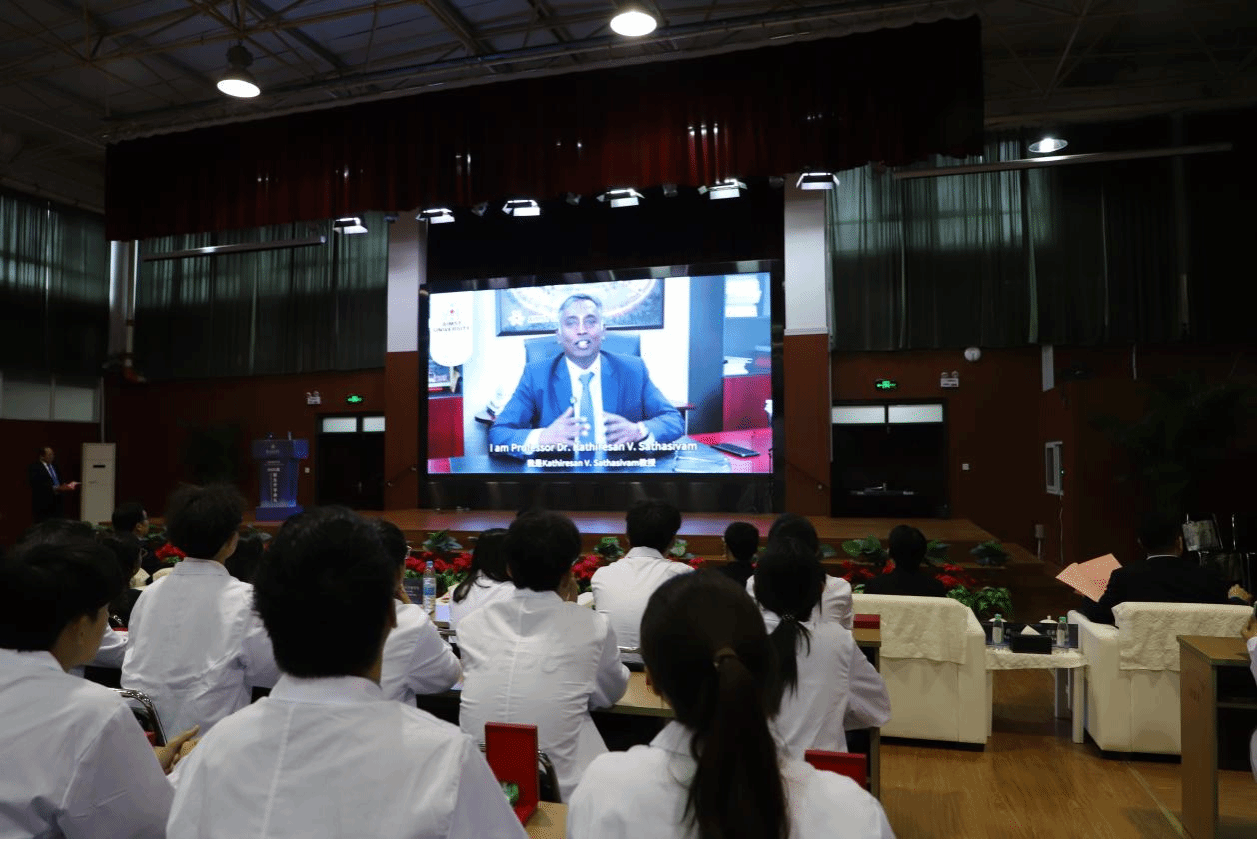 亚洲医药科技大学校长Prof. Chm Dr. Kathiresan V.Sathasivam以视频的方式介绍了该校在医药健康领域的办学优势,重点解读了两校在联合培养课程、国际交流平台、共享科研资源等方面的合作。他鼓励新生在学习中不断提升专业能力,期待未来线下相见。