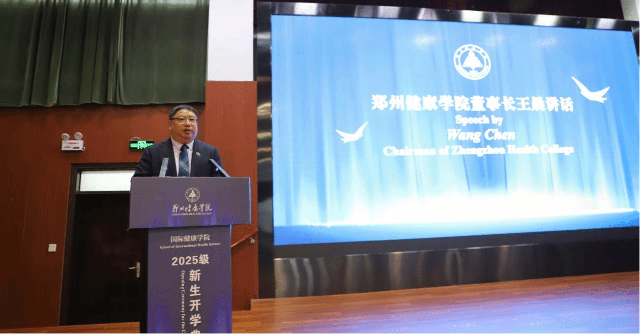 徽章颁发仪式后,王晨作总结讲话。他首先肯定开学典礼顺利举行,感谢亚洲医药科技大学的支持参与,同时,对新生提出三点希望:一是树立远大理想,将个人成长与健康事业发展紧密结合;二是珍惜国际教育资源,主动学习专业知识、参与实践活动;三是勇于担当责任,在学习生活中坚守初心,以实际行动践行健康使命。