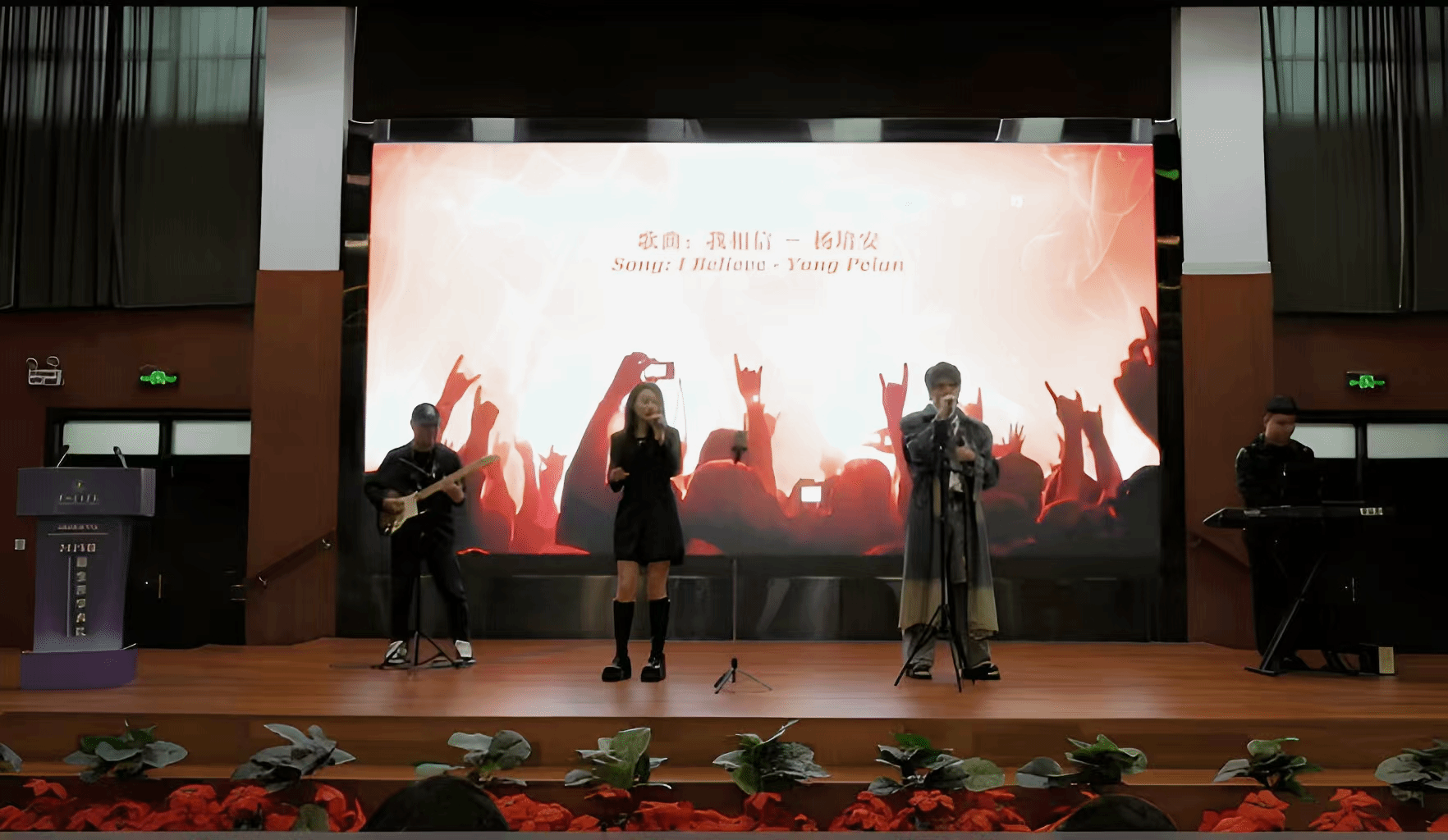 为调动氛围,典礼特别邀请专业乐队现场演奏。一首《我相信》以高亢旋律开场,传递逐梦信念。典礼中途,插入《Hey Jude》如长者的温柔抚慰,缓解新生入校的忐忑。紧接着,《追梦赤子心》瞬间点燃现场,旋律与初心共振,为开学盛典写下活力注脚。