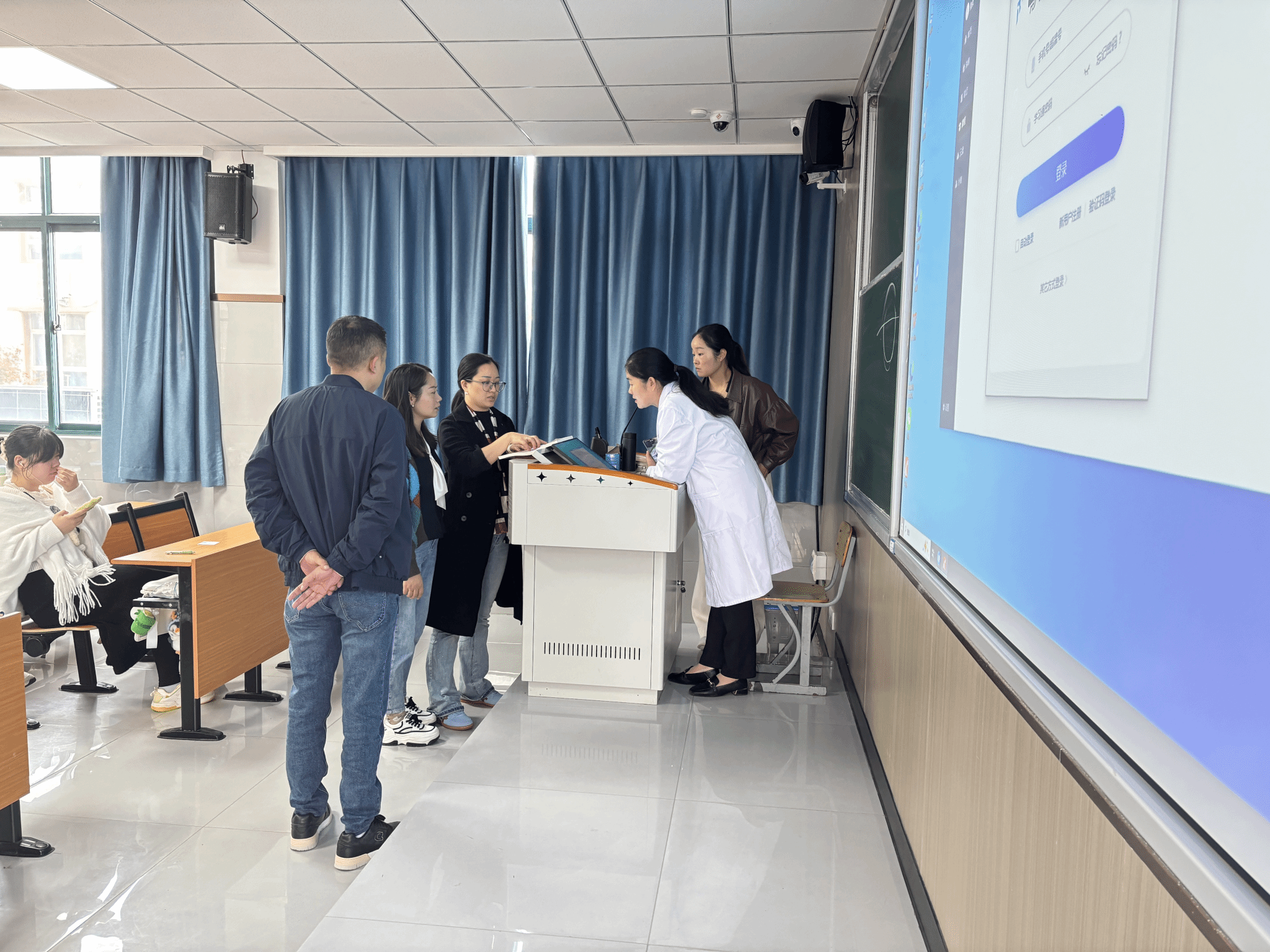 检查组一行首先深入教学区域,对号教学楼临床医学中外班和四号教学楼口腔医学中外班、康复治疗技术中外班、医学检验技术中外班教室进行了巡查。检查内容涵盖教室地面、桌椅、讲台、黑板、门窗的清洁状况,以及多媒体设备维护、垃圾及时清理等情况。张娟书记强调,教室是传播知识、启迪智慧的重要场所,一个窗明几净、设施完备的环境对于提升教学效果和学生的学习体验至关重要。要求辅导员带领好学生干部,必须加强日常巡查与保洁力度,建立长效管理机制,确保教学环境始终维持在高标准水平。