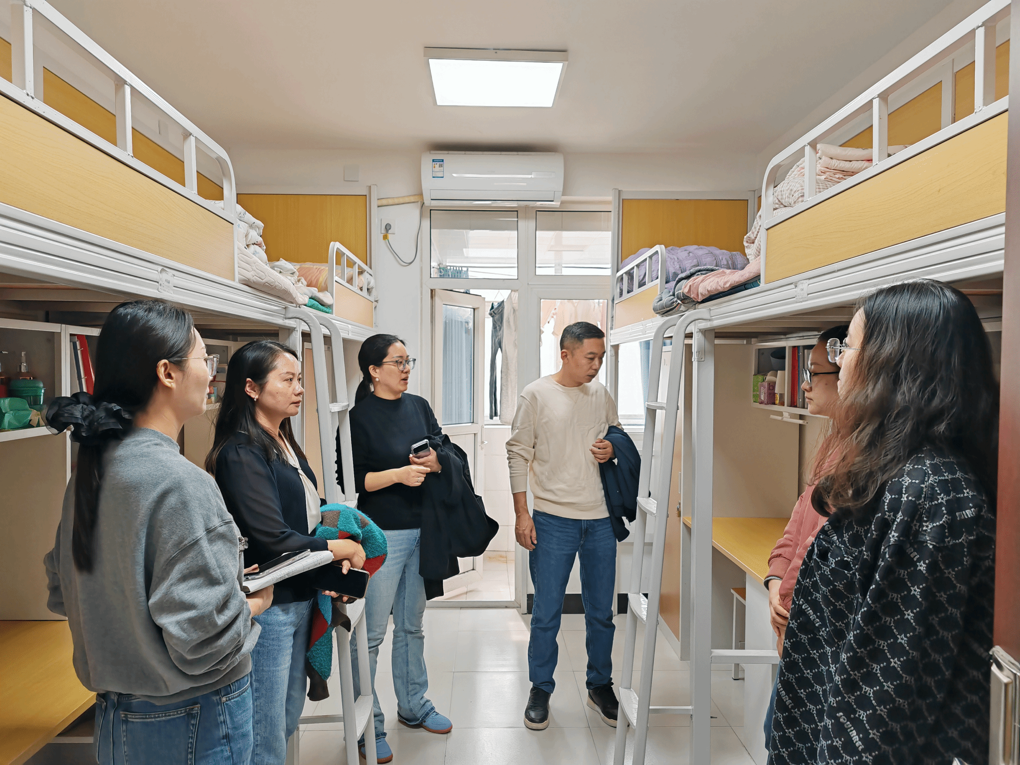 检查结束后,张娟主持召开了现场总结会。指出,宿舍和教室是学生在校期间最重要的两个活动场所,其环境质量直接关系到学生的身心健康与学习成效。她提出三点要求:一要学工人员高度重视,教导学生们学规矩、讲规矩、守规矩,对于违禁品,坚决不允许存放,对此次检查中发现的细小问题要进行整改;二要加强宿舍卫生细节管理关于被褥的叠放以及劳动工具的存放和地面卫生打扫,要有序干净整齐,引导学生自觉参与到美好宿舍环境的创建与维护中来;三要建立健全定期检查与随机抽查相结合的长效监督机制,维护宿舍卫生安全工作常态化、制度化。