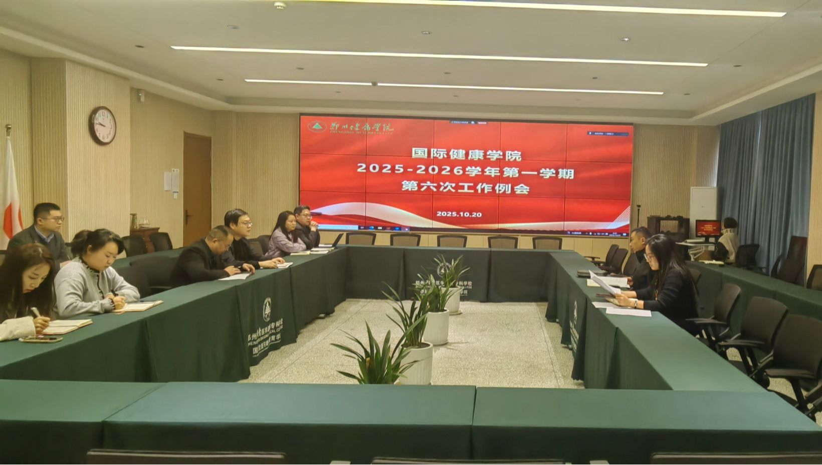 为统筹推进学院近期各项工作,明确工作方向,保障各项任务有序落实,10月20日上午,国际健康学院于综合教学楼207召开2025-2026学年第一学期第六次工作例会。国际健康学院院长许颖波,社会服务与国际交流党总支书记、国际健康学院常务副院长张娟,副院长陈容、毛亚刚,办公室副主任张莹莹等全体教职工参加此次会议。