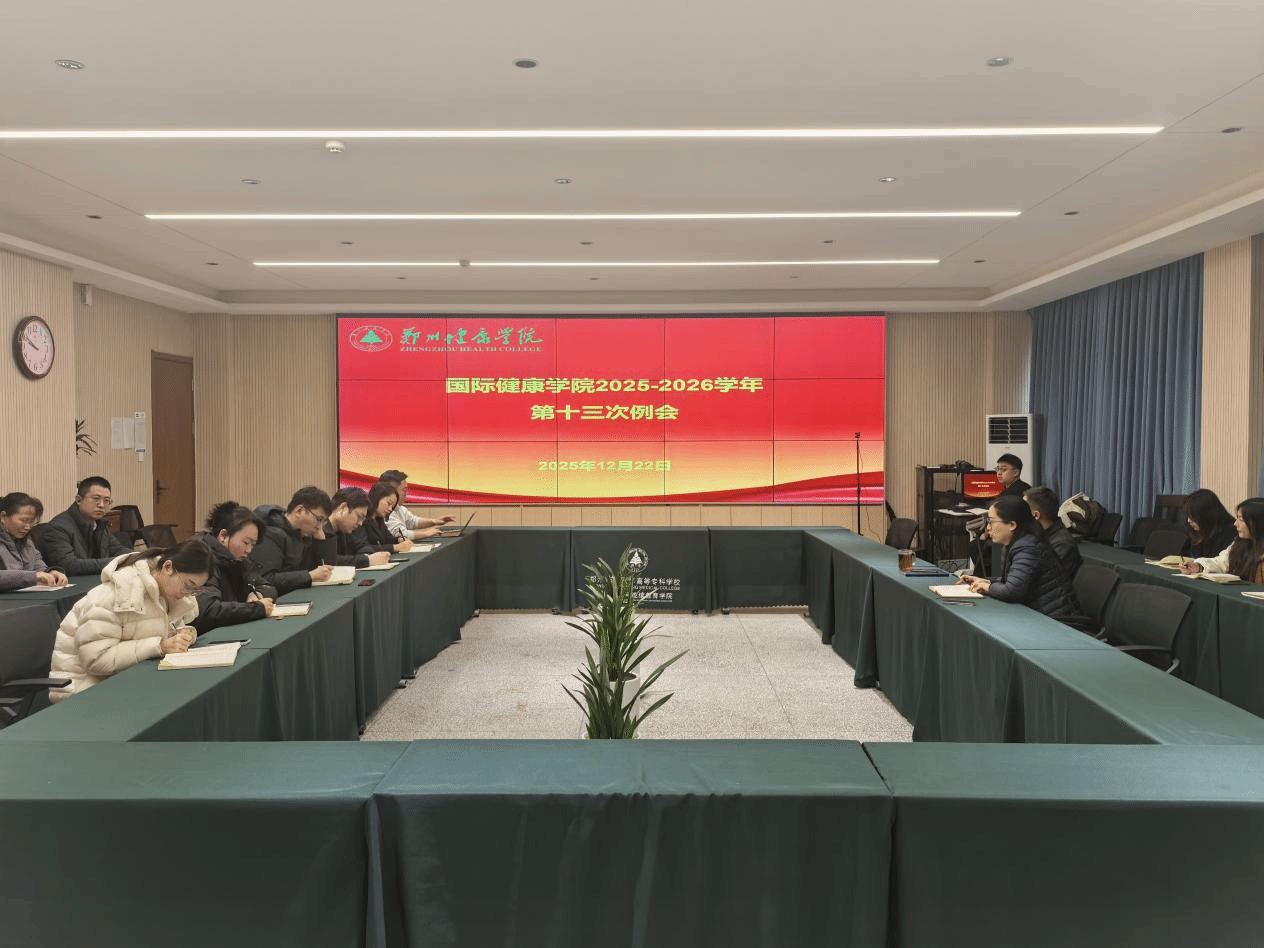 12月22日,国际健康学院在综合教学楼207会议室召开了2025-2026学年第一学期第十三次工作例会。国际健康学院院长许颖波,社会服务与国际交流党总支书记、国际健康学院常务副院长张娟,国际健康学院副院长陈容,副院长毛亚刚及全体教师出席了本次会议,会议由许颖波主持。