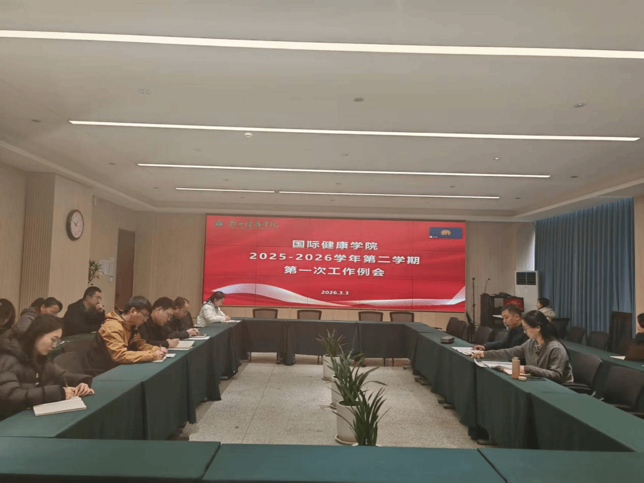 为推动新学期各项工作落地落细,明确任务方向,保障新学期工作平稳有序展开,2026年3月3日,国际健康学院在综合教学楼207会议室召开2025-2026学年第二学期工作部署会议。国际健康学院院长许颖波,社会服务与国际交流党总支书记、国际健康学院常务副院长张娟,副院长陈容及学院全体教职工参加会议,会议由许颖波主持。
