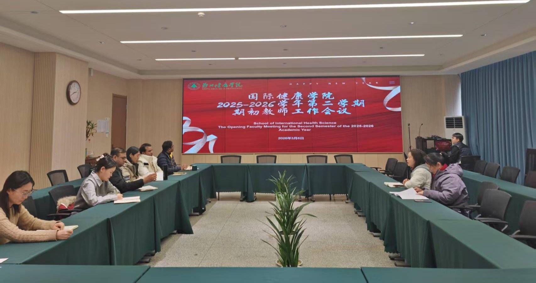 为规范教学管理、提升教学质量、明确新学期工作方向,2026年3月6日,国际健康学院在综合教学楼207办公室召开2025-2026学年第二学期期初教师工作会议。国际教育与继续教育党支部书记相英霞、国际健康学院办公室副主任张莹莹及学院全体教职工参会,会议由国际健康学院副院长陈容主持。