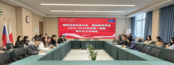 11月10日,国际交流与合作处、国际教育学院在综合教学楼207会议室召开了2025-2026学年第一学期第九次工作例会。国际交流与合作处处长、国际教育学院院长许颖波,社会服务与国际交流党总支书记张娟,国际交流与合作处副处长毛亚刚,国际教育学院副院长陈容、杨雨濛及全体教师出席了本次会议。会议由许颖波主持。