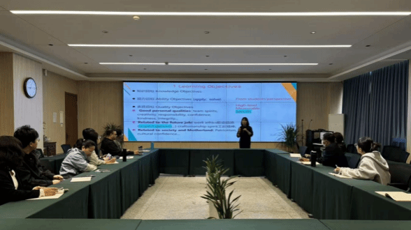 培训围绕“青年教师教学资料撰写能力提升”主题展开,刘亚伟老师采用中英双语的形式,从教学目标设计切入,系统拆解了知识目标、能力目标、素质目标的撰写逻辑与规范,结合学生视角明确了目标设定的“高阶性、可测性、针对性”要求,同时针对职业素养融入、工匠精神与文化自信渗透等要点,分享了教学资料撰写的实操技巧与优秀案例,为青年教师规范教学文件、优化教学设计提供了清晰指引。
