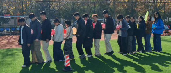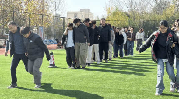 本次活动将思想政治教育自然融入团队协作实践,精心设计了“动力火车”“横扫千军”“两人三足”等一系列富有挑战性与趣味性的项目。参与成员随机组队,在协作中迅速建立默契。活动现场气氛热烈,尤其在“两人三足”环节中,队员们从初始步调不一到后期协调一致、健步如飞,充分展现出信任与协作所带来的团队力量。