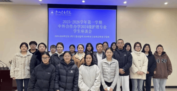 为推动中外合作办学项目高质量发展,凝聚智慧与力量,11月19日,国际教育学院在修武实训基地图书馆四楼会议室组织召开了2025-2026学年第一学期中外合作办学2024级护理专业学生座谈会。国际教育学院副院长陈容、杨雨濛,综合办公室主任王玉蓉,健康护理学院学生管理工作办公室主任张磊,中外合作办学2024级护理专业辅导员赵阳及20名学生代表出席了会议。会议由杨雨濛主持。