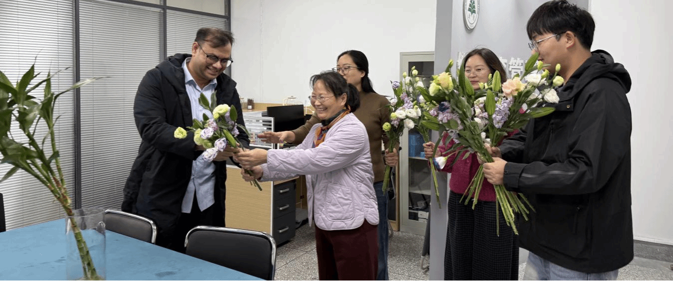 为营造和谐、温馨、积极向上的办公环境,提升全体教师的归属感和幸福感,11月3日,国际教育与继续教育党支部组织开展“花香满室 温情暖心”主题送花活动。在党支部书记相英霞带领下,支委成员走进各部门办公室,为各位教师送上鲜花。