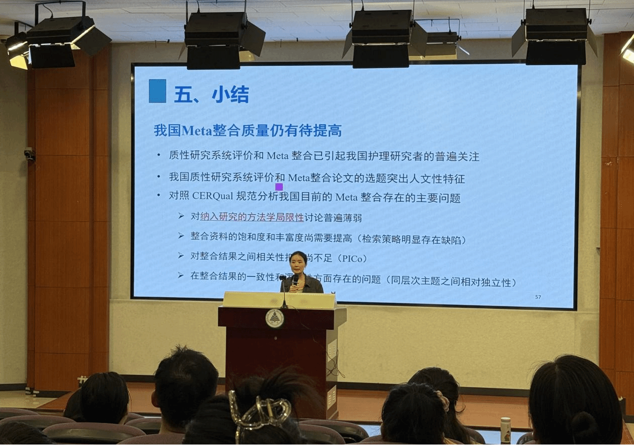 王文娜博士结合自身成功申报国家自然科学基金青年项目的实践经验,为青年科研人员提供了具有实用价值的参考。她指出,质性研究注重在自然情境中理解个体的体验与意义,常用方法包括现象学、扎根理论、民族志等,而Meta整合作为对多个质性研究结果进行系统归纳和解释的高级研究方法,能够提升研究结果的概括性和实践指导价值,特别适用于构建理论、推动循证护理和人文关怀相结合的临床实践。
