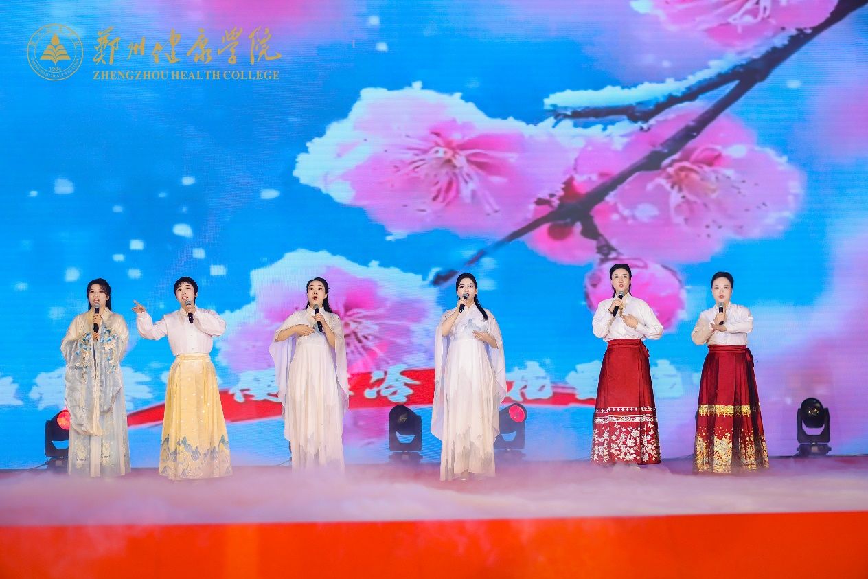 “初创・杏林发轫,质量立校”篇织就初心底色,诗朗诵的赤诚、歌舞的舒展,让学校起步时的锐气与温度扑面而来。校领导演绎的诗朗诵《澍青赓续,健康新篇》声震全场,字字铿锵间筑牢健康事业初心;舞蹈《聚力开合・筑梦新篇》舒展协作之姿,诠释团队向心力;戏歌《梅凰戏韵》融戏曲雅韵与时代新意,独唱《节日欢歌》传递新春喜悦;古筝伴舞《盈盈芙蓉语》以弦音舞姿绘就人文底色。