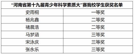 近日,河南省第十九届青少年科学素质大赛获奖名单正式揭晓,我校凭借扎实的科学素质教育根基和学子们的出色表现,在此次赛事中斩获颇丰、亮点纷呈。其中,史雨桐等6名学生在大学组竞赛中脱颖而出,分获各级奖项,具体为一等奖1项、二等奖2项、三等奖3项。同时,我校因组织工作成效显著,荣获“优秀组织奖”,充分彰显了学校在科学素质教育领域的扎实成效与强劲育人实力。