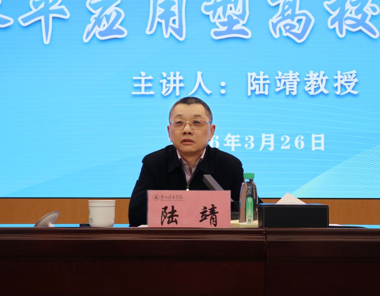 刘国际代表学校全体师生员工向陆靖教授的精彩报告和倾情指导致以衷心感谢和崇高敬意。他表示,陆靖教授渊博的学识、开阔的视野、严谨的治学态度令人深受震撼,本次报告既有高屋建瓴的理论阐释,又有贴合实际的实践指导,更有直击关键的问题剖析,恰逢其时、正中要害,为学校扎实推进本科建设、走好健康特色应用型发展之路提供了重要的理论遵循和实践样板,让全体与会人员深受启发、倍感振奋。紧扣学校本科建设关键攻坚期和“十五五”发展规划谋划推进的重要节点,刘国际向全校师生员工提出四点希望:一是提高思想站位,深刻把握高水平应用型大学建设核心要义,锚定学校健康特色本科建设定位,融入教育强国与中原健康战略大局;二是善学善思善用,汲取先进经验和发展理念,结合学校办学实际与卫生健康行业需求,破解本科建设堵点难点;三是坚持笃学创新实干,全体师生员工各尽其责、凝心聚力,以实干实绩推动本科建设工作落地见效;四是厚植家国情怀、坚守教育初心,牢记为党育人、为国育才使命,为中原健康战略实施和区域卫生健康事业高质量发展培养更多高素质应用型人才。