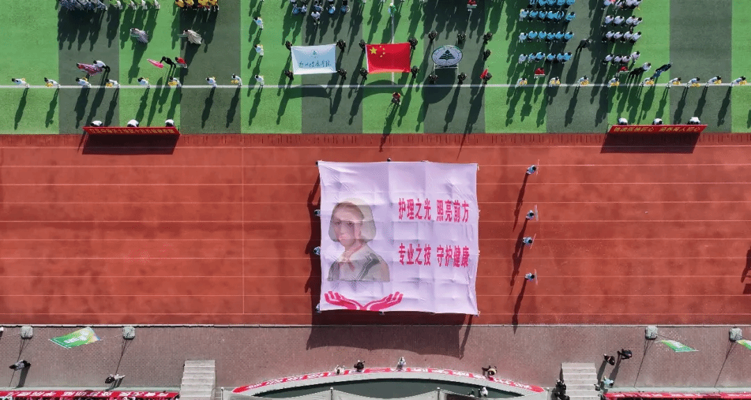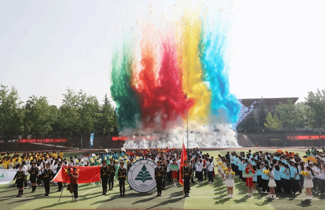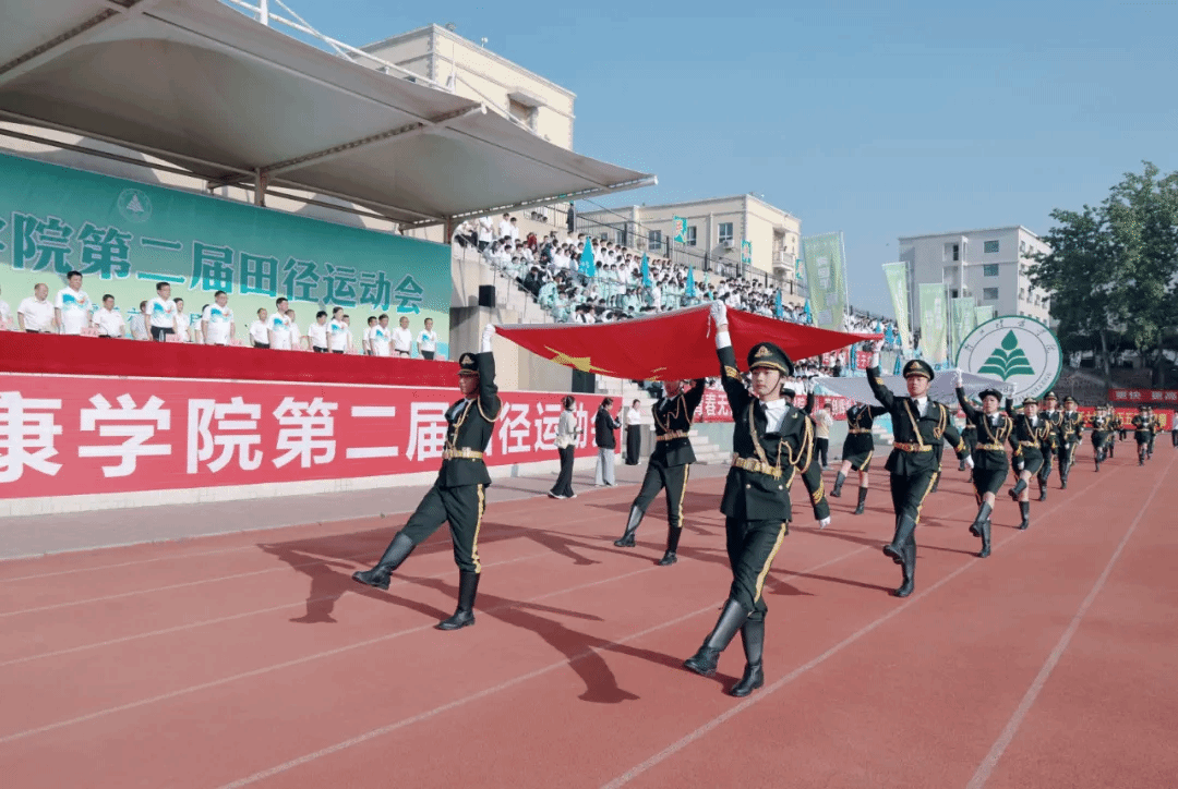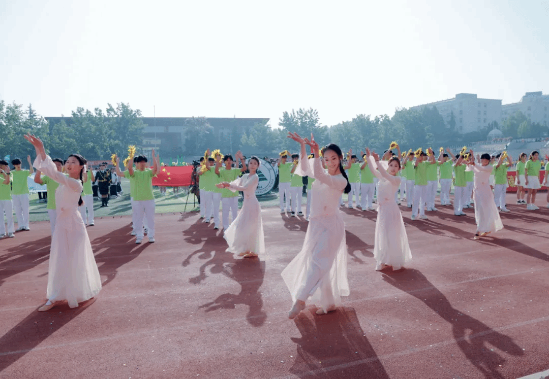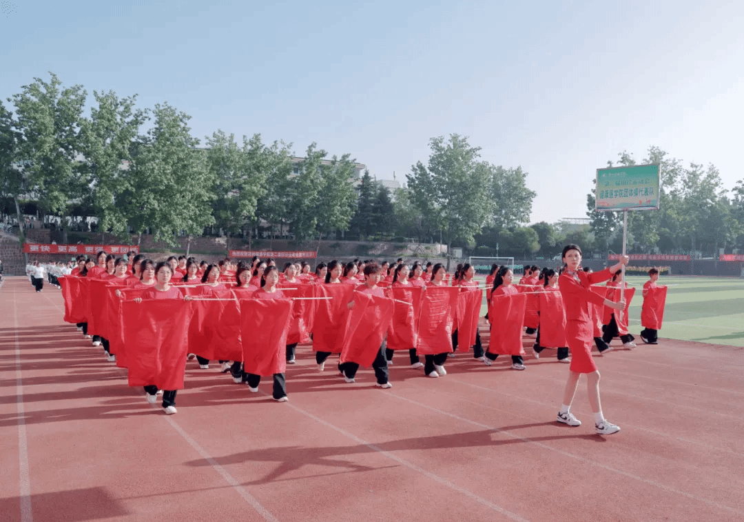 开幕式上,以“奋进‘十五五’ 健康向未来”为主题的团体操表演精彩纷呈、震撼全场,六支团体操表演队伍轮番上演,将医学特色、青春活力与校园底蕴完美融合。教职工团体操以《茉莉花》《天地龙鳞》《凤鸣朝阳》为脉络,温婉舞姿尽显育人初心,铿锵动作诠释奋进力量,凤凰造型寓意学校乘势而上、再启新程。第一篇章融合中医八段锦与现代医学急救技能,红黄旗帜交织,致敬古今医学先贤,传承“健康所系,性命相托”的医者誓言;第二篇章以金伞、武术、舞龙、扇舞绘就“爱心”“鲤鱼跃龙门”等图景,定格“健康”二字,诉说学校四十余载办学征程与本科新程的使命担当;第三篇章彩绸飞舞,队形变幻出胜利、十字、同心圆造型,彰显青年奋进力量与同心逐梦的坚定信念;第四篇章翻花流转、三色交织,人形波浪与生命之花惊艳亮相,武术表演刚劲有力,尽显医学智慧与自强不息的精神;第五篇章红绸舞动、绿扇翩跹,以灵动舞姿诠释立德树人初心,献礼健康中国宏伟蓝图。整场团体操表演气势磅礴、暖意融融,既展现了我校师生昂扬向上的精神风貌,也彰显了学校深耕大健康教育、坚守医学育人使命的责任与担当。赛场逐梦正当时,相信全体运动健儿将以饱满热情、拼搏姿态驰骋赛场,书写属于郑州健康学院的青春荣光!