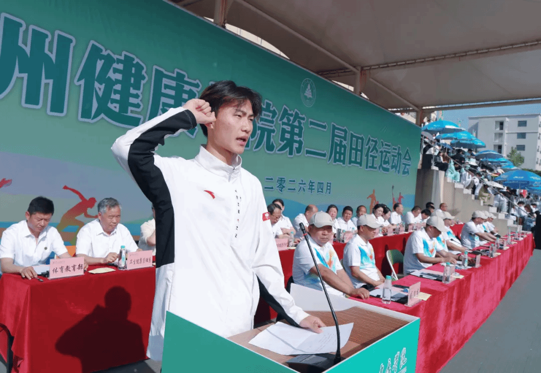 随后,裁判员代表杨雅各和运动员代表2025级本科护理1班刘坤同学先后庄严宣誓,承诺严格遵守竞赛规则与赛场纪律,恪守公平竞争准则,顽强拼搏、奋勇争先,赛出风格、赛出水平、赛出风采。
