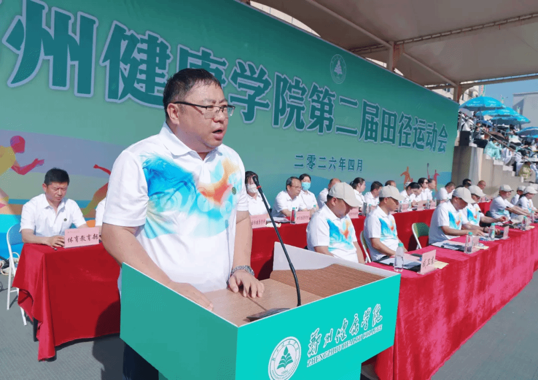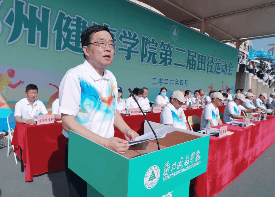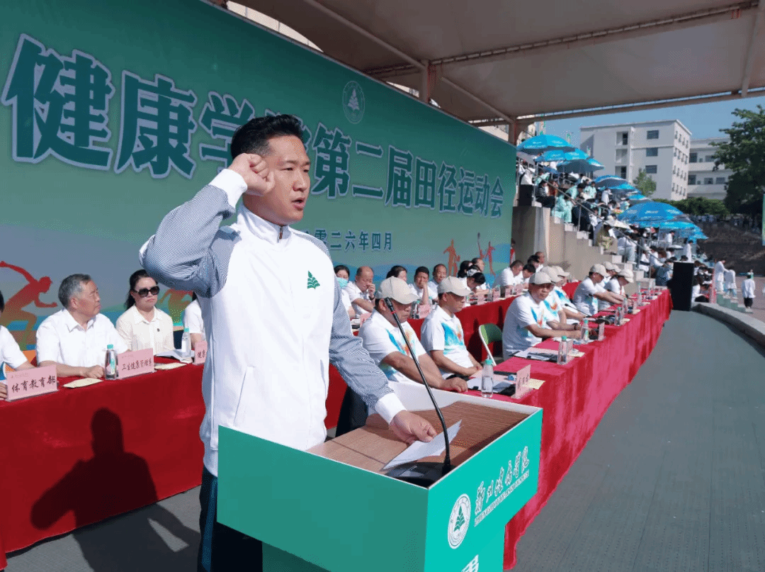 校长刘国际致开幕辞。他首先代表学校向本届运动会的顺利召开表示热烈祝贺,向为赛事辛勤付出的全体工作人员、教练员、裁判员致以诚挚感谢,向全体运动员、返校校友及全校师生致以美好问候。他指出,体育是立德树人的重要载体,是锤炼意志、凝聚力量、展现风貌的重要平台,学校始终坚持五育并举,以体育人、以体育心,着力培养体魄强健、品格坚毅、德术双馨的新时代健康服务人才。他强调,当前学校正处在本科办学新起点,希望全体师生以此次运动会为契机,弘扬奥林匹克精神与医者担当精神,把赛场上的拼搏劲头、协作意识,转化为教书育人、勤学笃行的实际行动。他寄语全体运动员严守规则、尊重对手、超越自我,赛出水平、赛出风格、赛出医学学子的精气神;希望全体裁判员公正执裁、严谨履职,全体师生文明观赛、热情助力,共同打造一场安全、有序、精彩、圆满的体育盛会。