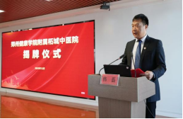 12月3日,柘城中医院西关院区揭牌现场,韩磊院长首先致辞,回顾医院发展历程、学科优势与服务能力,并对校院合作前景寄予厚望。随后,田雷鸣书记宣读了商丘市卫健委相关批文,正式确认合作资质。在全场嘉宾的见证下,王晨董事长与田雷鸣书记共同为“郑州健康学院附属柘城中医院”揭牌。