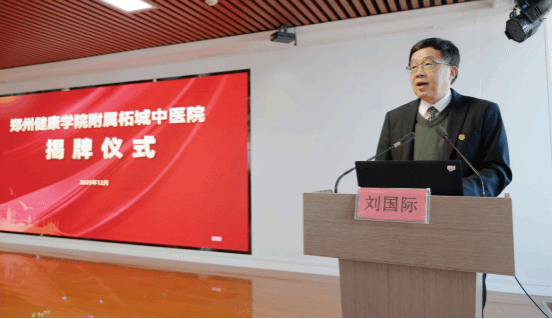 仪式上,韩磊院长介绍医院情况并致欢迎辞,县卫健委党组书记田雷鸣宣读了商丘市卫健委相关批文。随后,董事长王晨与田雷鸣书记共同为附属医院揭牌。校长刘国际在讲话中回顾了学校41年办学历程及校院前期合作基础,提出聚焦中医人才培养、强化科研协同、深化资源共享三点合作建议,强调双方将共建“教学—医疗—科研—传承”一体化发展生态。