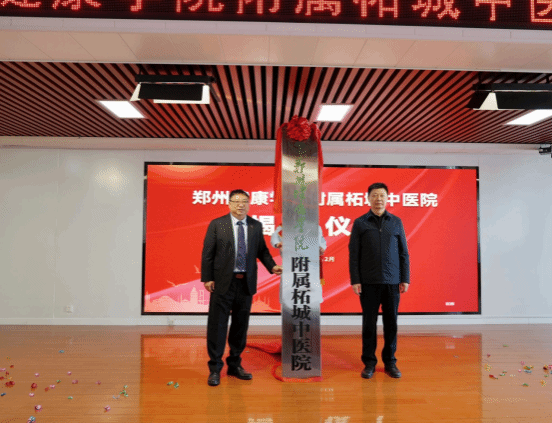 12月3日上午,郑州健康学院柘城中医院附属医院揭牌仪式在柘城中医院西关院区举行。郑州健康学院董事长王晨,校长刘国际,纪委书记、副校长潘守政等,柘城县卫健委党组书记、主任田雷鸣,柘城中医院党委书记、院长韩磊等领导嘉宾出席仪式,仪式由柘城县卫健委副主任张存良主持。