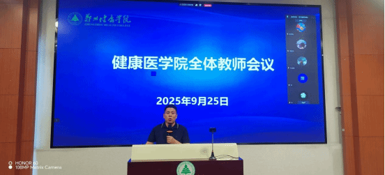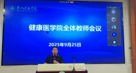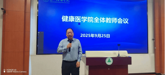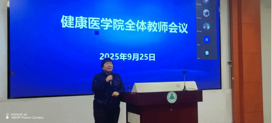 秋兰飘香,征程新启。9月25日下午,健康医学院2025-2026学年第一学期全体教师会议在学术中心二楼多功能厅召开。会议由任文院长主持,学院全体教师参会,臧校长莅临指导并发表重要讲话。