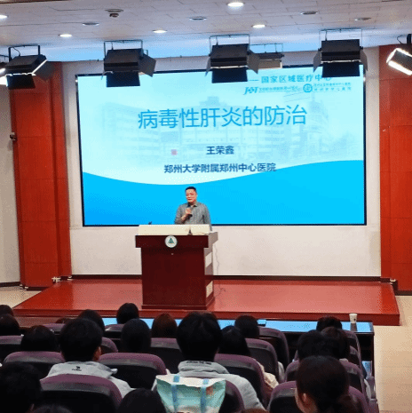 为强化2025级临床医学专业学生对病毒性肝炎防治知识的认知,提升专业素养,10月23日下午,内儿教研室特邀郑州大学附属郑州市中心医院感染科王荣鑫副主任医师,在学术中心二楼报告厅开展“病毒性肝炎防治”专题讲座。我校2025级临床医学专业近200名师生到场聆听,现场学习氛围浓厚。