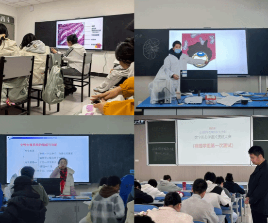 自大赛启动以来,全校各专业、各年级学生积极响应、踊跃报名。比赛分为校内初赛与复赛两个阶段:初赛采用笔试形式,重点考查学生对组织学、解剖学、病理学等基础理论的掌握程度;复赛则通过现场读片与答辩,综合考察学生对数字切片和实物标本的辨识、描述、机制推理及临床关联能力。