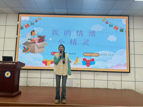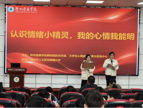 活动伊始,来自郑州健康学院的学生主持人牛柯心和李梓洋,以亲切活泼的语言引导同学们进入情绪探索的世界,并以大学生情景话剧拉开序幕,同学们精彩的表演将心理变化体现的淋漓尽致。随后,心理专家陈芳芳老师以“情绪向导”的身份,为四年级的同学们带来了一场生动有趣的情绪认知讲座。陈老师通过形象生动的“情绪小精灵”比喻,引导学生认识喜、怒、哀、惧等基本情绪,并传授了腹式呼吸、倾诉分享、运动释放等实用的情绪调节方法。