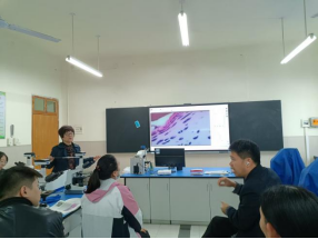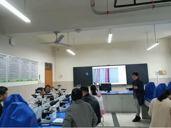会上,刘安丽教授对拟重点增设的7张切片(疏松结缔组织、骨组织、软骨组织、皮肤、平滑肌、心肌、脂肪组织)进行了系统讲解与示范教学。她不仅剖析了各组织的结构特点与功能联系,更引导教师们解读切片背后的“形态语言”,从静态图像中理解动态生命过程。通过集体学习,教师们深化了对基本组织微观结构的认识,拓展了知识维度,为高质量开展实验教学奠定了坚实基础。