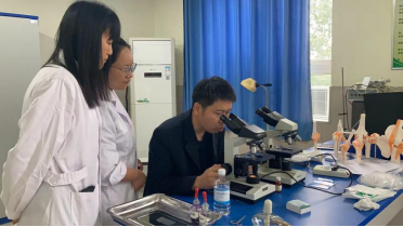 张海林教授结合自身丰富经验,围绕显微镜使用技巧展开专项指导。他着重强调油镜使用的核心要点:“油镜作为高倍观察的关键设备,镜头保养直接影响观察效果,操作时务格外小心,避免镜头磨损。”针对标本染色这一难点,他更是给出具体可操作的解决方案:“冲洗染液时,先滴少量清水与染液充分混合,再用细小缓流的自来水从玻片上端轻柔冲洗,直至染液颜色逐渐变浅,这样能有效防止标本被冲掉;吸干水分时,将玻片放在吸水纸中央,把吸水纸折叠后轻轻按压即可,千万不能来回涂擦,否则会破坏标本结构。”