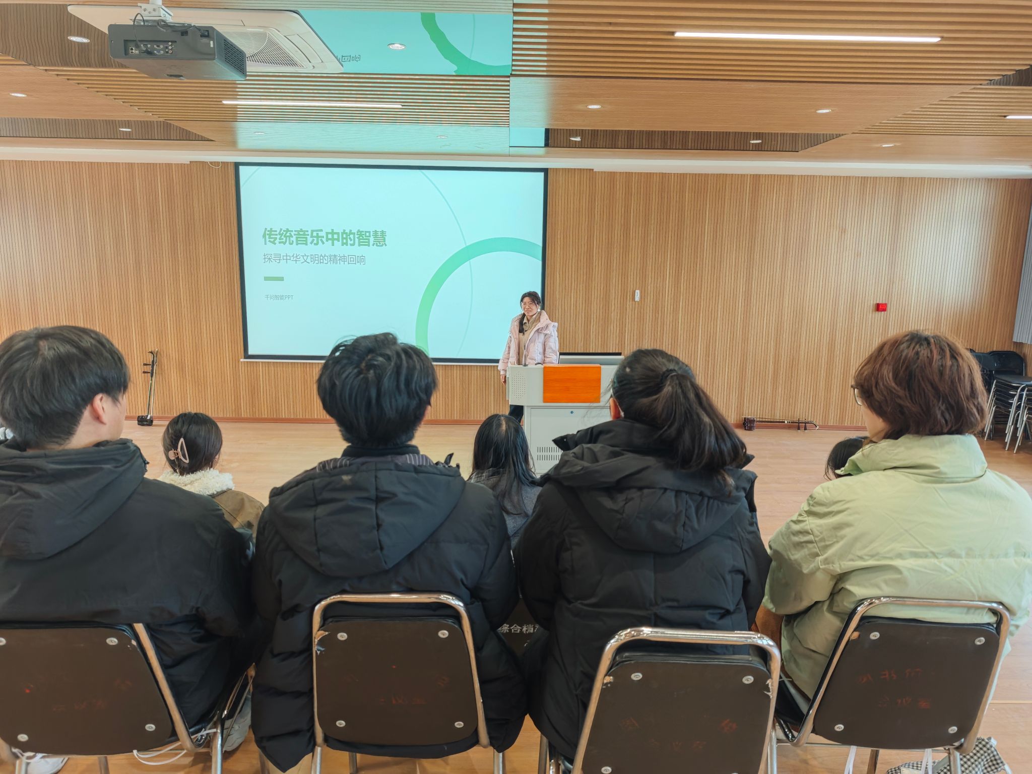 2025年11月25日中午,由健康人文教育部艺术教育中心主办的“聆听千年回响——传统音乐中的智慧”专题讲座在艺术楼三楼举行,由田鹤霄老师主讲。音乐爱好者齐聚一堂,在悠扬的民乐声中,开启了一场穿越时空的文化对话。