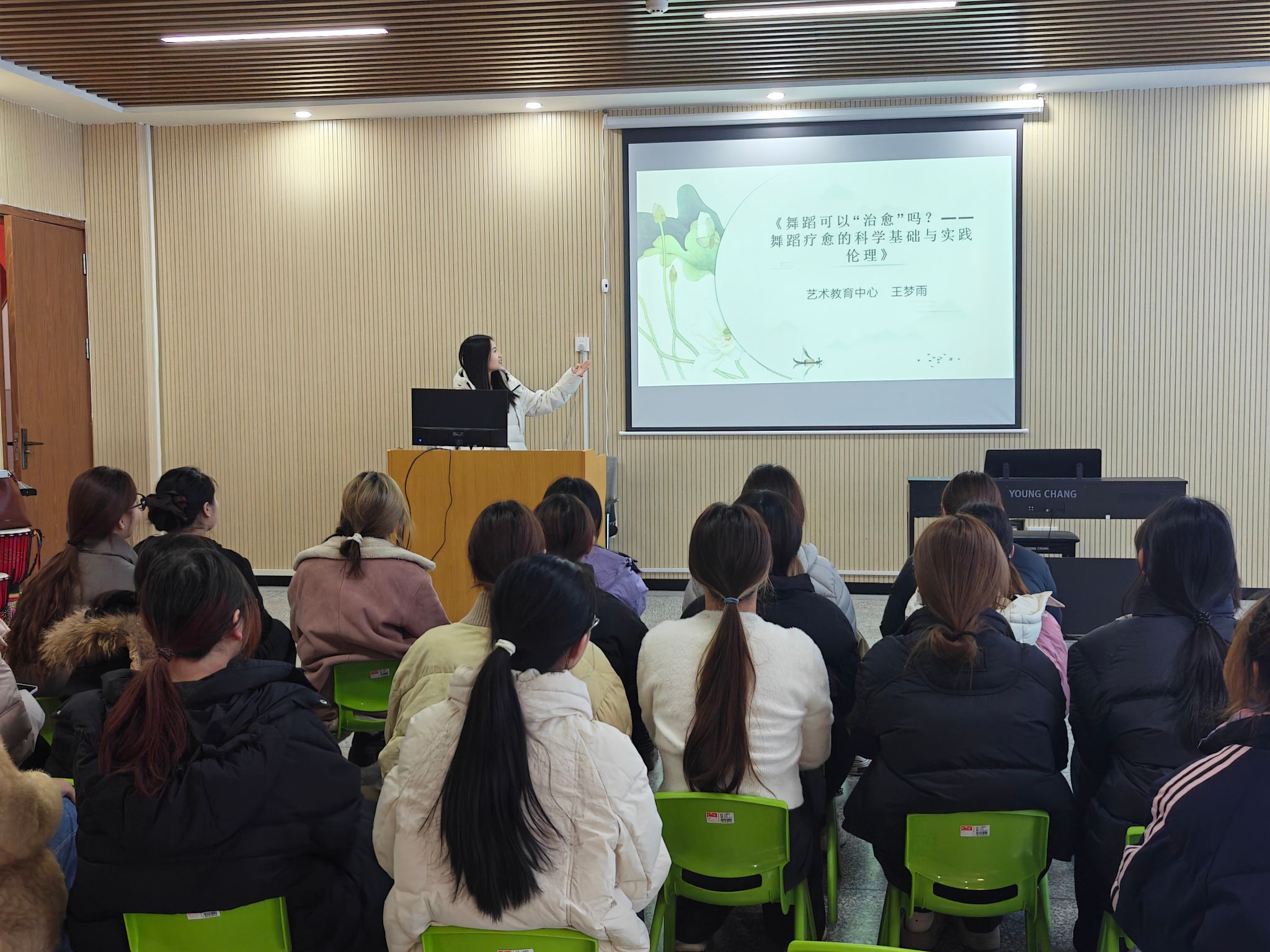 2025年12月10日上午,由健康人文教育部(艺术教育中心)主办的专题学术讲座《舞蹈可以“治愈”吗?——舞蹈疗愈的科学基础与实践伦理》,本次讲座由王梦雨老师主讲,在综合教学楼307教室圆满举行。