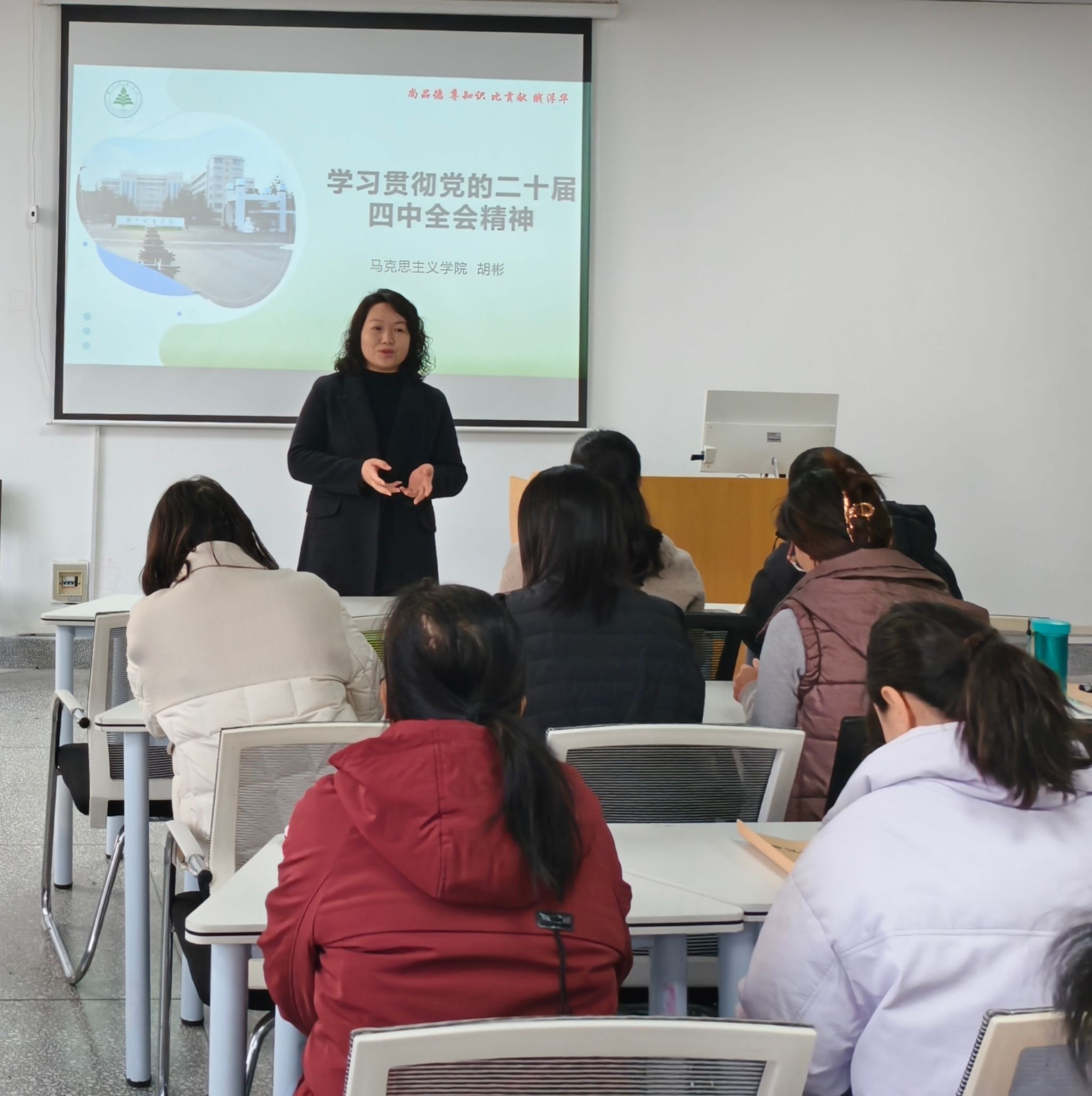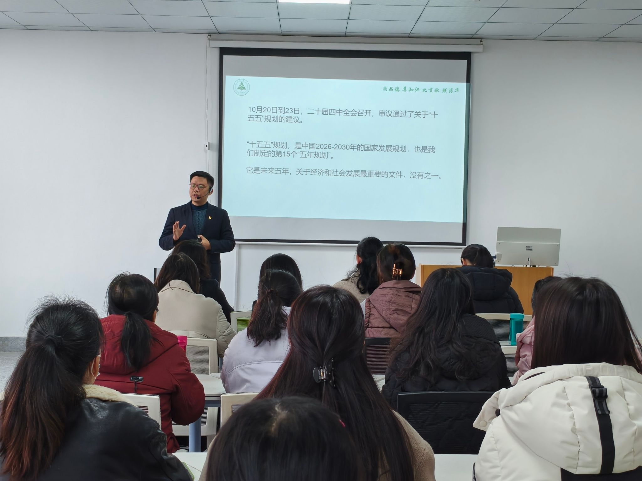 为深入学习贯彻党的二十届四中全会精神,切实把思想和行动统一到党中央关于“十五五”时期经济社会发展的重大决策部署上来,2025年12月8日上午,健康人文教育部开展专题学习,特邀马克思主义学院副院长胡彬副教授开展专题讲座。