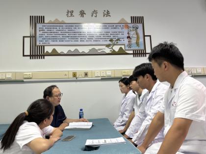 2025年7月6日下午,盛夏的郑州骄阳似火,河南中医药大学第三附属医院推拿科内却弥漫着沉静而专注的气息。郑州健康学院中医系针灸推拿教研室骨干教师范高洁、马佳佳正带领四位备赛第二届“一带一路暨金砖国家技能发展与技术创新大赛”中医临床技能赛项的选手,在弥漫着艾草芬芳的临床一线进行着关键性赛前集训。