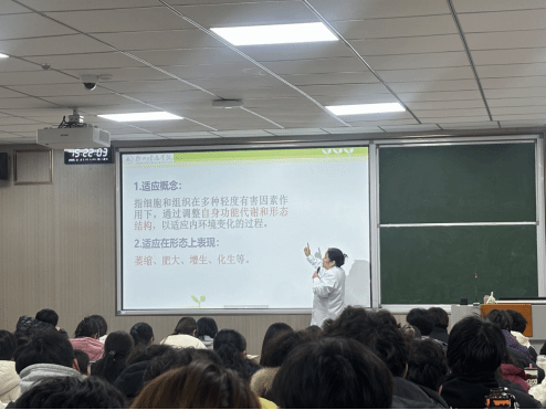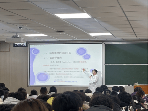 课堂上,马老师以清晰的教学逻辑和丰富的教学手段,系统讲解了病理学的学科定位、研究方法及其在医学教育中的“桥梁”作用。在“细胞与组织的适应”部分,重点阐述了萎缩、肥大、增生、化生四种适应形式的病理特征与临床意义,结合大量高清病理图示与真实临床案例,将抽象的理论知识具象化、可视化,引导学生思考病理变化与临床疾病的关联,增强知识的运用和临床思维能力的培养。