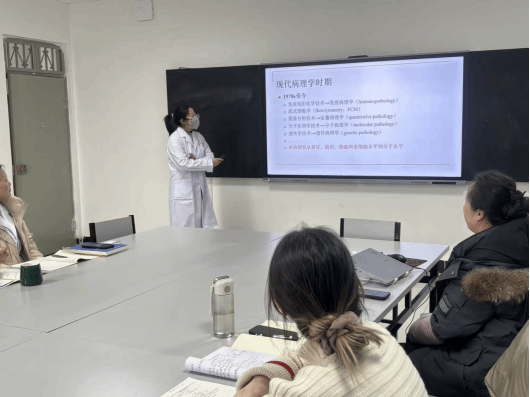 在试讲环节中,三位新教师依次登台,每人进行20分钟的模拟授课。试讲内容涵盖病理学核心知识点,包括《病理学》绪论、炎症病理过程、局部血液循环障碍等内容。三位教师准备充分,教学思路清晰,能够结合临床案例进行讲解,展现了扎实的专业功底和良好的教学潜力。