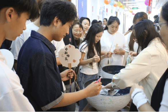 漆扇制作体验更是人气高涨。在专业老师的简要讲解和示范后,师生们纷纷动手实践。挑选扇骨、调制大漆、精心髹涂、点缀装饰……每一步都充满了创造的乐趣。原本素白的扇面在大家的巧手下,呈现出流光溢彩、独一无二的图案。留学生们表示,亲手制作一把蕴含中国传统工艺之美的漆扇,不仅是一次难忘的体验,更是一份特别的中秋纪念。外籍教师们也对这项精细而富有艺术性的非遗技艺赞不绝口。