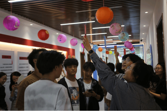 一条条融知识性、趣味性于一体的谜语悬挂在灯笼下,内容涵盖中秋典故、传统文化、汉字智慧等。中外师生或凝神思考,或相互讨论,或为猜中谜底而欢呼雀跃。同学们对这一古老的文化活动表现出极大兴趣,在学院老师的帮助下,他们不仅成功解出谜底,更深入了解了中秋节的起源、习俗及其蕴含的团圆、和谐的美好寓意。