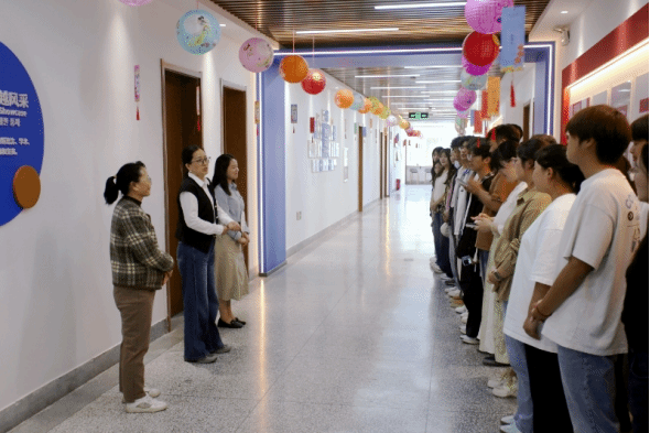 本次活动设置了富有传统韵味的猜灯谜和体验非遗技艺的漆扇制作两个主要环节,二楼走廊被富有中秋韵味的红灯笼和彩色灯谜条点缀得格外喜庆,瞬间将师生们带入浓厚的中秋文化氛围之中,让大家切身体会到中华传统文化的独特魅力。