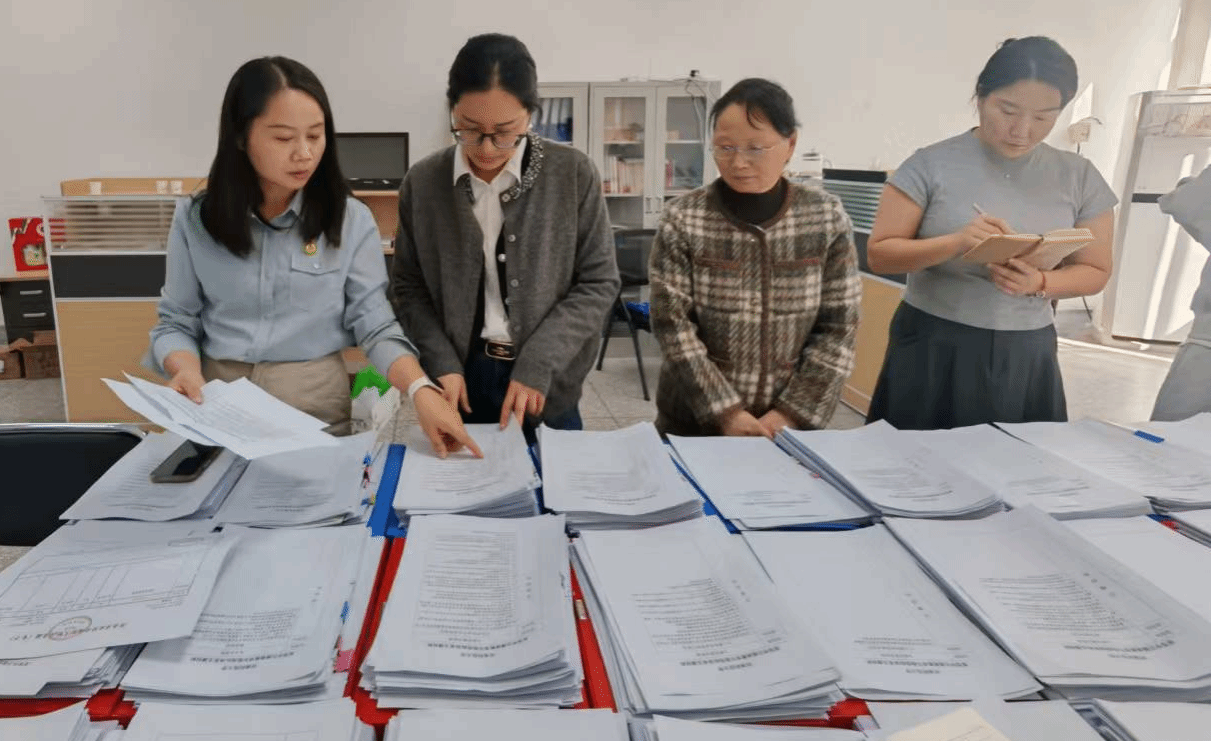 在审查过程中,张娟书记对材料的系统性与完整性予以肯定,同时强调,要继续做好日常档案的收集与管理,进一步强化逻辑主线、突出核心成效,以更精准、直观的方式呈现教学点建设成果。陈容副书记则从细节入手,逐项核验,就部分材料的规范化与精准化提出优化建议。